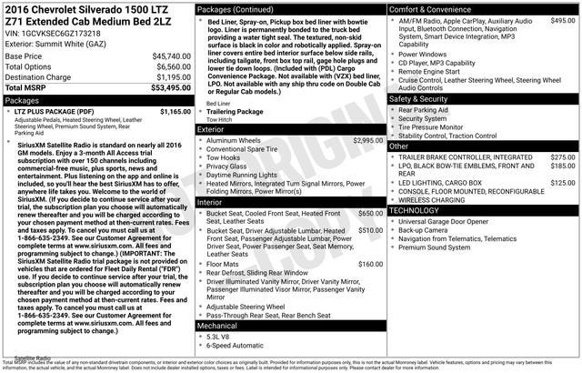 Clean CARFAX. 2016 Chevrolet Silverado 1500 LTZ 2LZ Summit White EcoTec3 5.3L V8 6-Speed Automatic Electronic with Overdrive 4WD 4D Double Cab