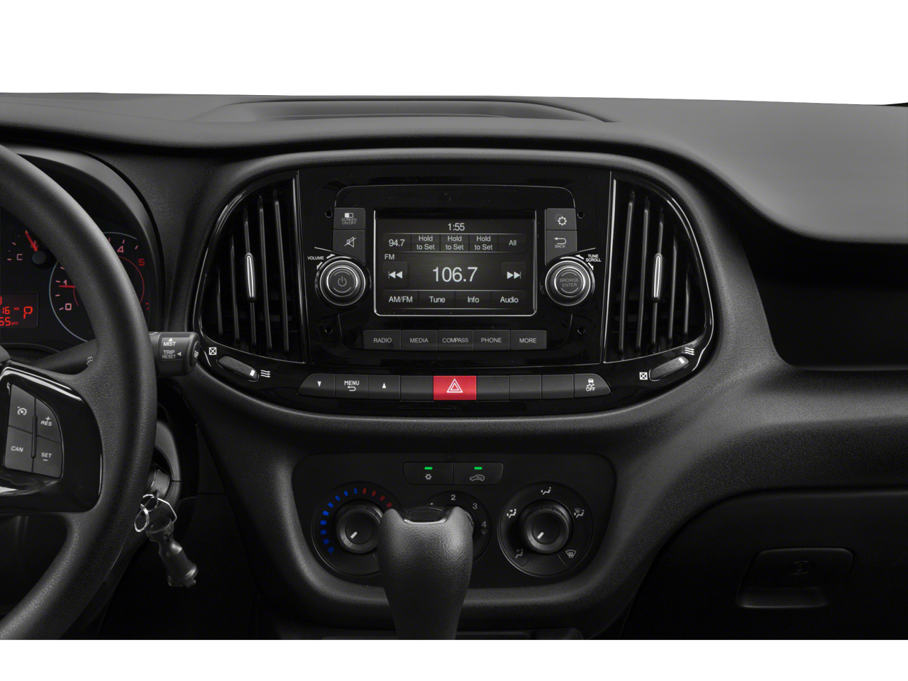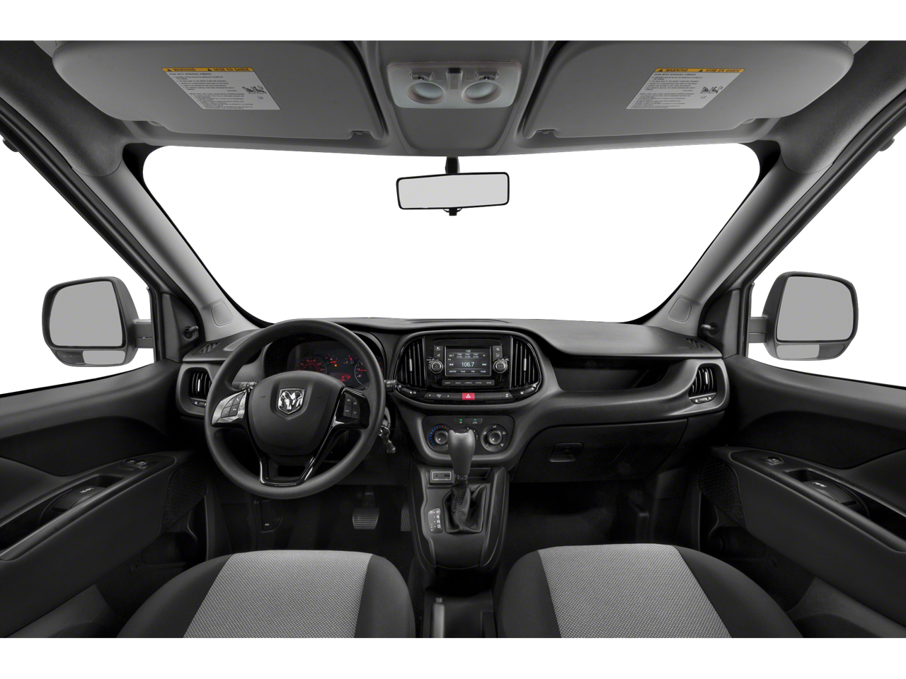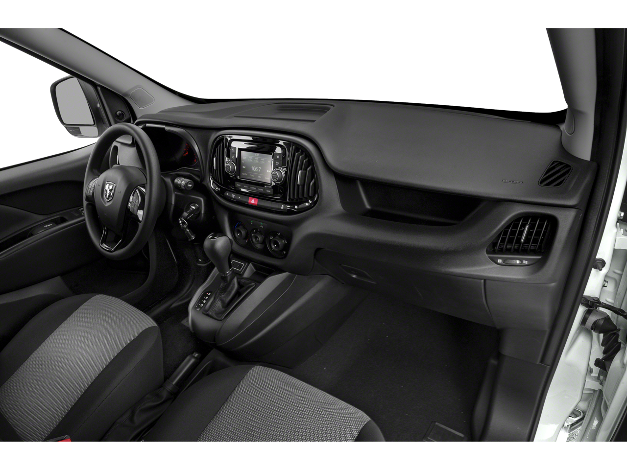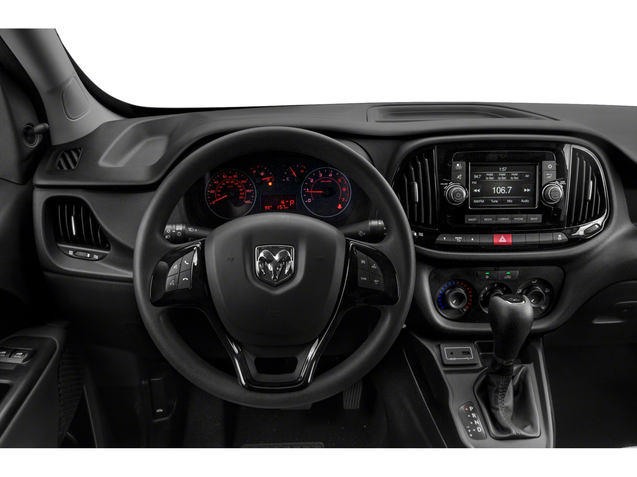 3.73 Axle Ratio, 4 Speakers, 5.0 Touchscreen Display, ABS brakes, Air Conditioning, AM/FM radio, Block heater, Bodyside moldings, Brake assist, Cloth Low-Back Bucket Seats, Daytime Running Headlamps, Delay-off headlights, Driver door bin, Driver vanity mirror, Driver's Seat Mounted Armrest, Dual front impact airbags, Dual front side impact airbags, Electronic Stability Control, Exterior Parking Camera Rear, Fixed Rear Cargo Door Window, Four wheel independent suspension, Front anti-roll bar, Front Bucket Seats, Front reading lights, Illuminated entry, Integrated Voice Command w/Bluetooth®, Knee airbag, Low tire pressure warning, Occupant sensing airbag, Outside temperature display, Overhead airbag, Overhead console, ParkSense Rear Park Assist System, Passenger door bin, Passenger seat mounted armrest, Passenger vanity mirror, Power steering, Power windows, Radio: Uconnect 3 w/5 Display, Rear anti-roll bar, Remote keyless entry, Speed Control, Suspension w/HD Stabilization, Tachometer, Telescoping steering wheel, Tilt steering wheel, Traction control, Trip computer, Upfit Interface Connector, Variably intermittent wipers, Wheels: 16 x 6.5 Silver Steel. 21/28 City/Highway MPG