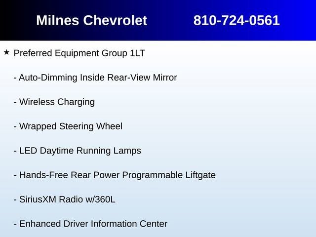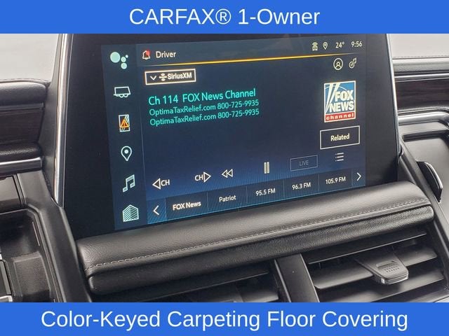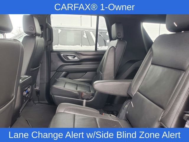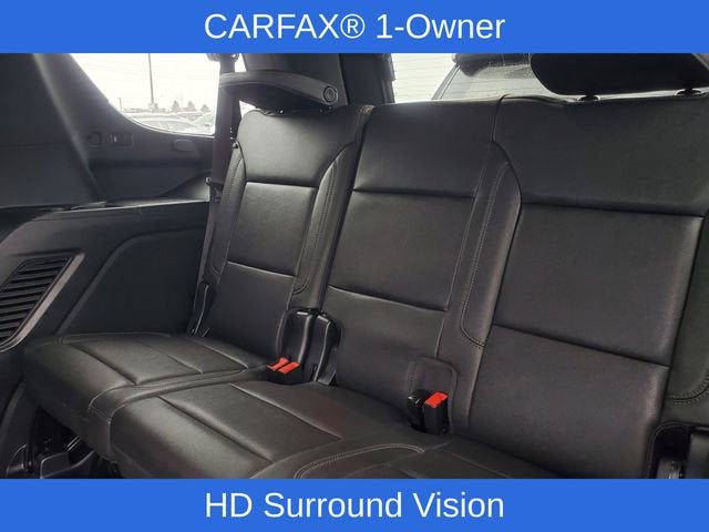 4WD, Black Leather, 1st & 2nd Row Color-Keyed Carpeted Floor Mats, 2-Speed Active Electronic AutoTrac Transfer Case, 2nd Row Pwr Release 60/40 Split-Folding Bench Seat, 3rd Row 60/40 Power-Folding Split-Bench Seat, Advanced Trailering Package, Auto-Dimming Inside Rear-View Mirror, Bose 9-Speaker Stereo Audio System Feature, Bright Front & Rear Door Sill Plates, Color-Keyed Carpeting Floor Covering, Driver & Front Outboard Passenger Airbags, Driver Alert Package, Enhanced Driver Information Center, Extra Capacity Cooling System, Floor Console w/Storage Area, Hands-Free Rear Power Programmable Liftgate, HD Surround Vision, Heated 2nd Row Outboard Seats, Heated Steering Wheel, Hitch Guidance w/Hitch View, Infotainment Display, Integrated Trailer Brake Controller, Lane Change Alert w/Side Blind Zone Alert, LED Daytime Running Lamps, Luxury Package, Max Trailering Package, Memory Settings, Memory Settings for Driver, Outside Heated Power-Adjustable Mirrors, Power Tilt & Telescopic Steering Column, Preferred Equipment Group 1LT, Rear Cross Traffic Alert, Rear Pedestrian Alert, Remote Start, SiriusXM Radio w/360L, Smart Trailer Integration Indicator, Universal Home Remote, Wireless Charging, Wrapped Steering Wheel, 10-Way Power Driver & Passenger Seat Adjusters, 3.23 Rear Axle Ratio, 3rd row seats: split-bench, 4-Wheel Disc Brakes, 9 Speakers, ABS brakes, Air Conditioning, Alloy wheels, AM/FM radio: SiriusXM with 360L, Apple CarPlay/Android Auto, Auto High-beam Headlights, Auto-dimming Rear-View mirror, Automatic temperature control, Brake assist, Bumpers: body-color, Compass, Delay-off headlights, Driver door bin, Driver vanity mirror, Dual front impact airbags, Dual front side impact airbags, Electronic Stability Control, Emergency communication system: OnStar and Chevrolet connected services capable, Four wheel independent suspension, Front anti-roll bar, Front Bucket Seats, Front Center Armrest, Front dual zone A/C, Front High-Back Reclining Bucket Seats, Front reading lights, Fully automatic headlights, Garage door transmitter, Heated door mirrors, Heated Driver & Front Passenger Seats, Heated front seats, Illuminated entry, Leather-Appointed Seat Trim, Low tire pressure warning, Memory seat, Navigation System, Occupant sensing airbag, Outside temperature display, Overhead airbag, Overhead console, Panic alarm, Passenger door bin, Passenger vanity mirror, Power door mirrors, Power driver seat, Power Liftgate, Power passenger seat, Power Release 2nd Row Bucket Seats, Power steering, Power windows, Premium audio system: Chevrolet Infotainment 3 Premium, Premium Smooth Ride Suspension, Radio: Chevrolet Infotainment 3 Premium System, Rain sensing wipers, Rear air conditioning, Rear anti-roll bar, Rear reading lights, Rear seat center armrest, Rear window defroster, Rear window wiper, Remote keyless entry, Roof rack: rails only, Security system, Speed control, Speed-sensing steering, Split folding rear seat, Spoiler, Steering wheel mounted audio controls, Tachometer, Telescoping steering wheel, Tilt steering wheel, Traction control, Trip computer, Variably intermittent wipers, Voltmeter, Wheels: 18 x 8.5 Bright Silver Painted Aluminum, 4WD, Black Leather, 1st & 2nd Row Color-Keyed Carpeted Floor Mats, 2-Speed Active Electronic AutoTrac Transfer Case, 2nd Row Pwr Release 60/40 Split-Folding Bench Seat, 3rd Row 60/40 Power-Folding Split-Bench Seat, Advanced Trailering Package, Auto-Dimming Inside Rear-View Mirror, Bose 9-Speaker Stereo Audio System Feature, Bright Front & Rear Door Sill Plates, Color-Keyed Carpeting Floor Covering, Driver & Front Outboard Passenger Airbags, Driver Alert Package, Enhanced Driver Information Center, Extra Capacity Cooling System, Floor Console w/Storage Area, Hands-Free Rear Power Programmable Liftgate, HD Surround Visi