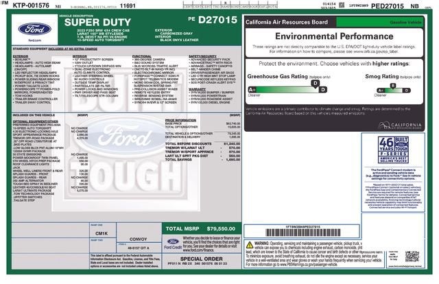 2023 Ford F-250SD Lariat Gray Metallic 7.3L V8 PFI OHV 16V Federal 430hp 10-Speed Automatic 4WD 4D Crew Cab