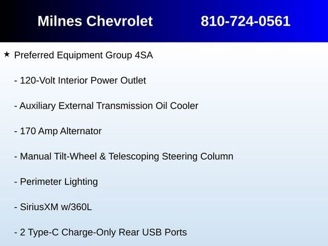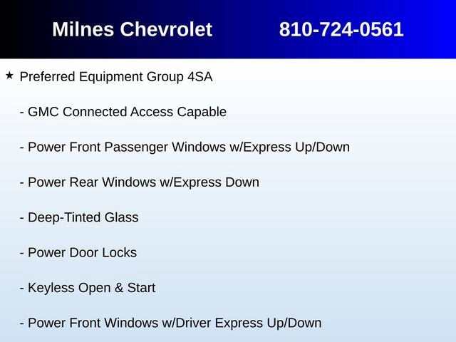 CarBravo Certified, 10-Speed Automatic, 4WD, Black Leather, 120-Volt Bed Mounted Power Outlet, 120-Volt Interior Power Outlet, 170 Amp Alternator, 2 Charge/Data USB Ports, 2 Type-C Charge-Only Rear USB Ports, 6-Speaker Audio System Feature, Auto-Locking Rear Differential, Auxiliary External Transmission Oil Cooler, Chrome Header & Chrome Grille Insert Bars, Color-Keyed Carpeting Floor Covering, Deep-Tinted Glass, Electric Rear-Window Defogger, Front Frame-Mounted Black Recovery Hooks, Front Rain-Sensing Wipers, GMC Connected Access Capable, HD Rear Vision Camera, Hitch Guidance, Keyless Open & Start, LED Cargo Area Lighting, Manual Tilt-Wheel & Telescoping Steering Column, OnStar & GMC Connected Services Capable, Perimeter Lighting, Power Door Locks, Power Front Passenger Windows w/Express Up/Down, Power Front Windows w/Driver Express Up/Down, Power Rear Windows w/Express Down, Preferred Equipment Group 4SA, Push Button Start, Rear Wheelhouse Liners, Remote Vehicle Starter System, SiriusXM w/360L, Standard Suspension Package, Steering Wheel Audio Controls, Theft Deterrent System (Unauthorized Entry), Trailering Package, Wi-Fi Hotspot Capable, 10-Way Power Driver Seat Adjuster w/Lumbar, 10-Way Power Passenger Seat Adjuster w/Lumbar, 3.23 Rear Axle Ratio, 4-Wheel Disc Brakes, 6 Speakers, ABS brakes, Air Conditioning, Alloy wheels, AM/FM radio: SiriusXM with 360L, Apple CarPlay/Android Auto, Auto High-beam Headlights, Auto-dimming door mirrors, Auto-dimming Rear-View mirror, Automatic Emergency Braking, Automatic temperature control, Brake assist, Buckle to Drive, Bumpers: chrome, Compass, Delay-off headlights, Deleted 3 Years of OnStar Remote Access, Driver door bin, Driver Memory, Driver vanity mirror, Dual front impact airbags, Dual front side impact airbags, Electronic Stability Control, Following Distance Indicator, Forward Collision Alert, Front 40/20/40 Split-Bench Seat, Front anti-roll bar, Front Center Armrest w/Storage, Front dual zone A/C, Front fog lights, Front Pedestrian Braking, Front reading lights, Front wheel independent suspension, Fully automatic headlights, Heated door mirrors, Heated Driver & Front Outboard Passenger Seating, Heated front seats, Heated steering wheel, Illuminated entry, IntelliBeam Automatic High Beam On/Off, Lane Keep Assist w/Lane Departure Warning, Low tire pressure warning, Memory seat, Navigation System, Occupant sensing airbag, Outside temperature display, Overhead airbag, Overhead console, Panic alarm, Passenger door bin, Passenger vanity mirror, Perf Leather-Appointed Front Outboard Seat Trim, Power door mirrors, Power driver seat, Power passenger seat, Power steering, Power windows, Premium audio system: GMC Infotainment System, Radio data system, Radio: Premium GMC Infotainment Audio System, Rain sensing wipers, Rear reading lights, Rear seat center armrest, Rear step bumper, Rear window defroster, Remote keyless entry, Security system, Speed control, Speed-sensing steering, Split folding rear seat, Steering wheel mounted audio controls, Tachometer, Telescoping steering wheel, Tilt steering wheel, Traction control, Trip computer, Variably intermittent wipers, Voltmeter, Wheels: 18 x 8.5 6-Spoke Machined Aluminum, Wireless Apple CarPlay/Wireless Android Auto, 10-Speed Automatic, 4WD, Black Leather, 120-Volt Bed Mounted Power Outlet, 120-Volt Interior Power Outlet, 170 Amp Alternator, 2 Charge/Data USB Ports, 2 Type-C Charge-Only Rear USB Ports, 6-Speaker Audio System Feature, Auto-Locking Rear Differential, Auxiliary External Transmission Oil Cooler, Chrome Header & Chrome Grille Insert Bars, Color-Keyed Carpeting Floor Covering, Deep-Tinted Glass, Electric Rear-Window Defogger, Front Frame-Mounted Black Recovery Hooks, Front Rain-Sensing Wipers, GMC Connected Access Capable, HD Rear Vision C